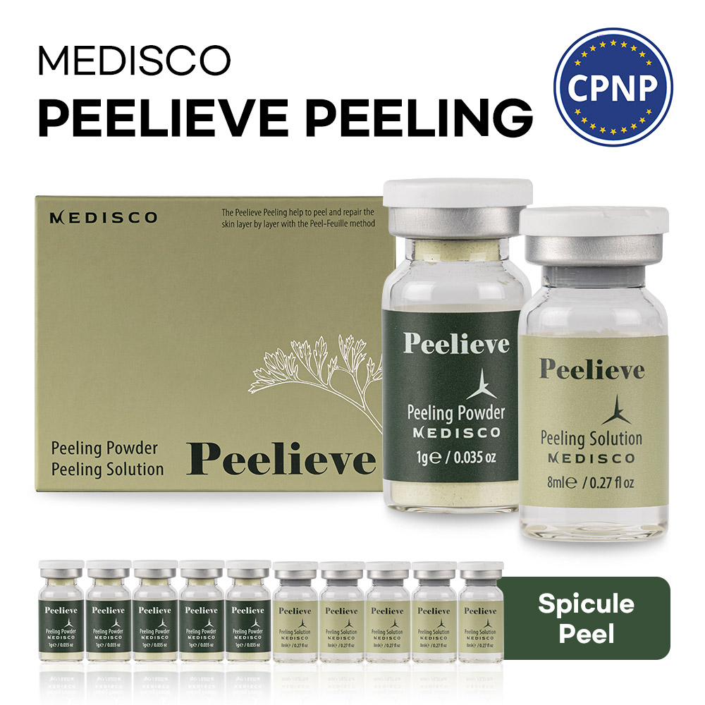 Medisco Peelieve Peeling ampoule este un sistem de peeling care îndepărtează celulele moarte ale pielii prin intermediul micro-particulelor numite Spicule, care se înseriază în piele. Medisco Peelieve Peeling